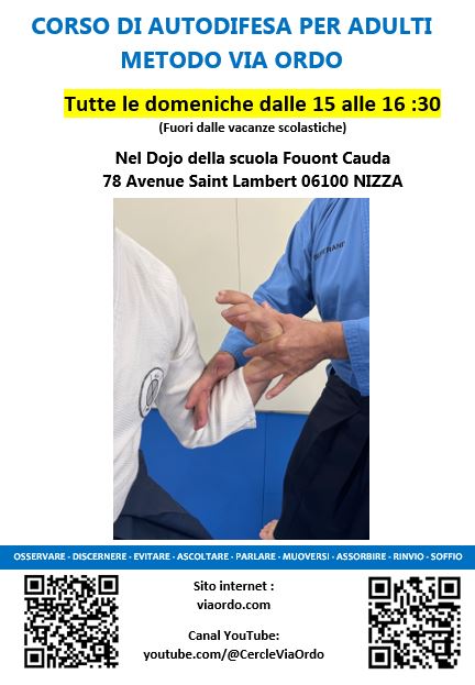 - Via ordo Esterno è trovare risposte semplici, dolci ed efficaci a qualsiasi aggressione. Cominciamo a schivare muovendo i piedi, poi assorbiamo l’energia negativa, la trasformiamo in energia positiva e la rimandiamo indietro.