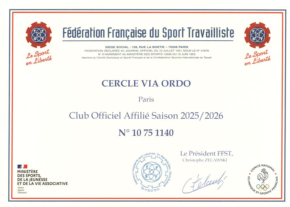 Le Cercle Via ordo est affilié à la Fédération Française du Sport Travailliste (F.F.S.T.)